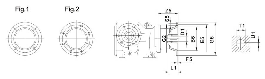 Исполнение с выходным одно или двухстороним цилиндрическим валом (К37-К157)